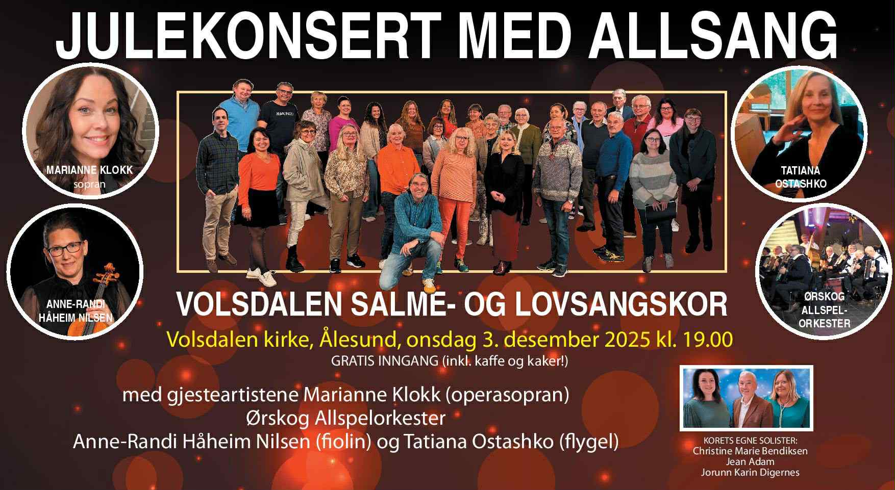 Onsdag 3 desember kl 1900 holder Volsdalen salme- og lovsankor med venner, konsert i Volsdalen kirke. Kom, bli med å syng julesanger!